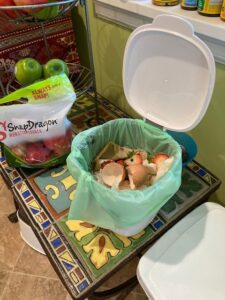 I've been enjoying participating in Black Earth Composting's curbside service. In addition to the green bin BEC provides with a subscription, I purchased this small countertop bin which is super convenient as I'm cooking. (Got it at the Container Store.) When full, I simply put the biodegradable bags (provided by BEC) in the green BEC bin. The bins aren't smelly and are easy to clean (for the most part, just wipe out).